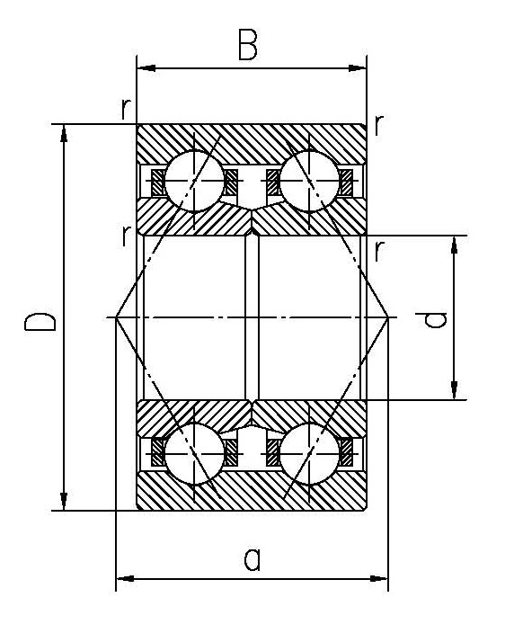 與單列軸承相比雙列角接觸球軸承具有更好的剛性,能承受傾覆力矩。軸承為非分離式。特別適用于有高剛性要求的應用場合。常用于小汽車的前輪輪轂中(有的車型也用同尺寸的雙列圓錐滾子軸承)。